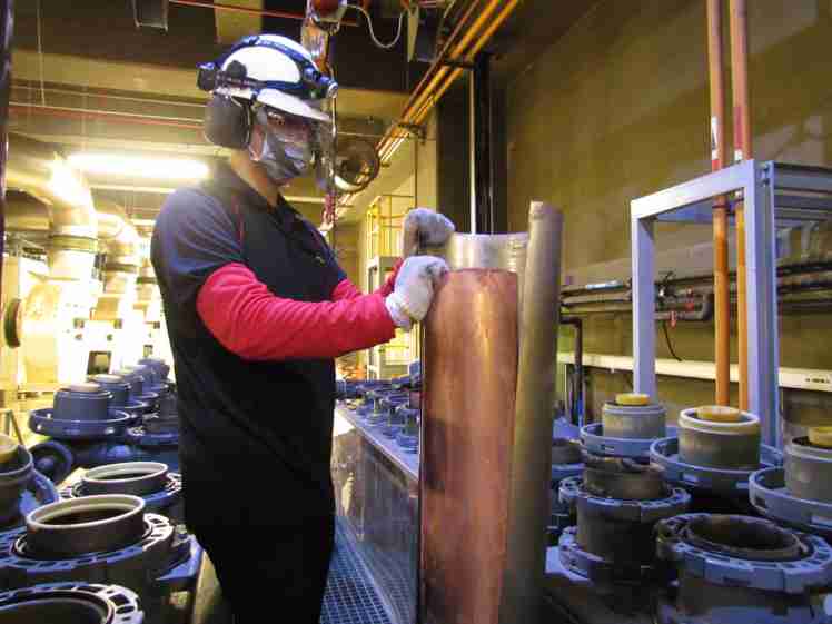 CG电子将废弃物转化成有效的工业或民生原物料,,图为废铜液淬炼后再制成纯度极高的铜管