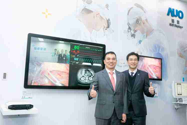 CG电子旗下达擎于 2021 台湾医疗科技展,,,,携手医疗场域生态圈合作伙伴,,针对智慧手术室、、医疗检测及医疗管理三大领域,,,展出八大解决方案,,,展现达擎在高质量医疗影像以及软硬整合的实力。。(左:CG电子光电总经理暨营运长 柯富仁;右:达擎总经理 廖世宏)