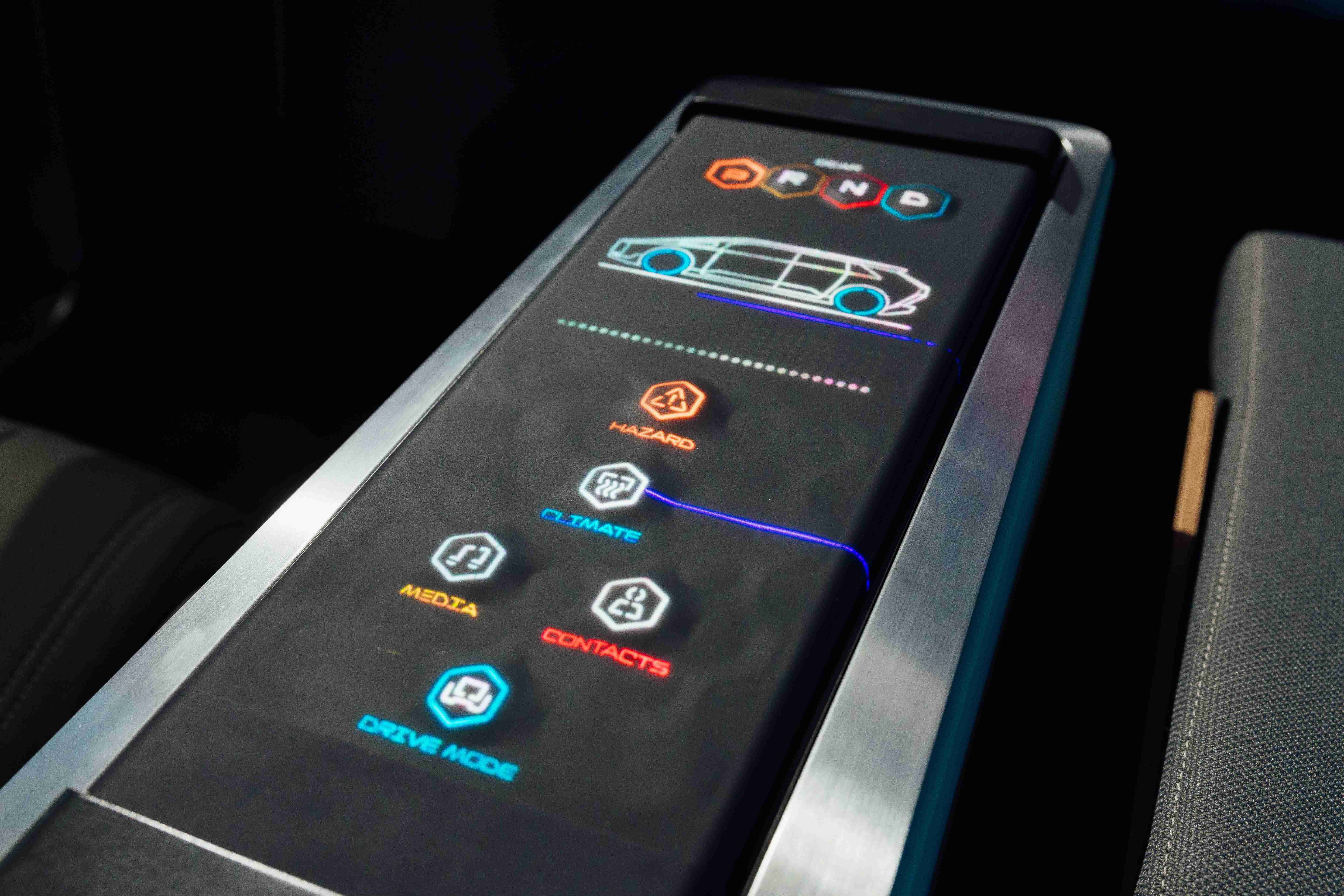 幻境全景天幕(Virtual Sky Canopy)将无缝拼接大型化的透明Micro LED显示器融入至天窗,,,带来沉浸式体验,,,,将人机介面扩展至整个座舱。。。。 CG电子光电以人性化的设计引领直觉式的人机互动,,,,透过多变形态中控显示(Morphing Center Control)、、、、隐藏式智驾介面(Foldable Cruise Pilot)等解决方案,,让乘用者依据自身需求调整、、、、控制座舱内所需功能。。