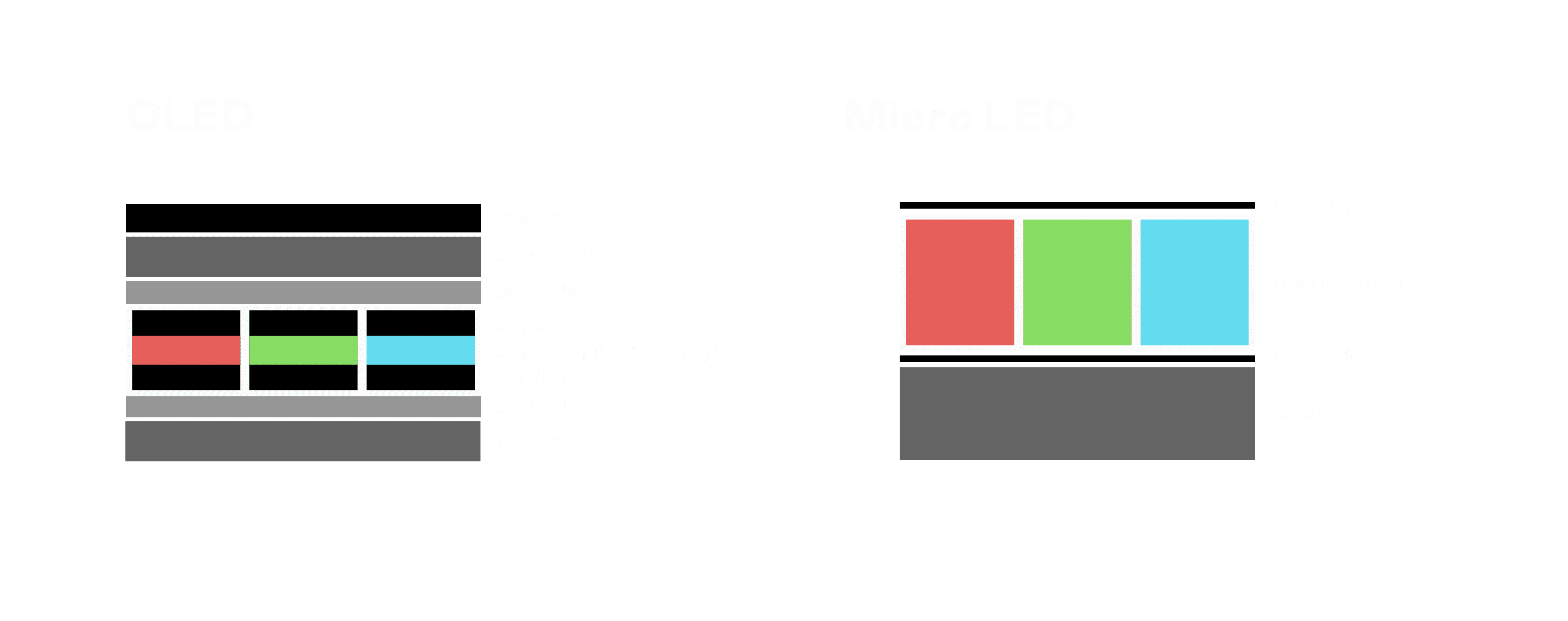 以 LED 做为显示画素,,,可让 LED 的发光效率发挥到极致,,从而让显示器具备优异的亮度表现,,,不论是在户外或室内,,均具备出众的显示效果。。同时,,,,与使用有机材料的 OLED 相比,,,,LED 具备更稳定、、、、寿命更长的特性,,不仅不会有画面烙印问题,,,而且更不容易出现故障、、、、坏点。。。。