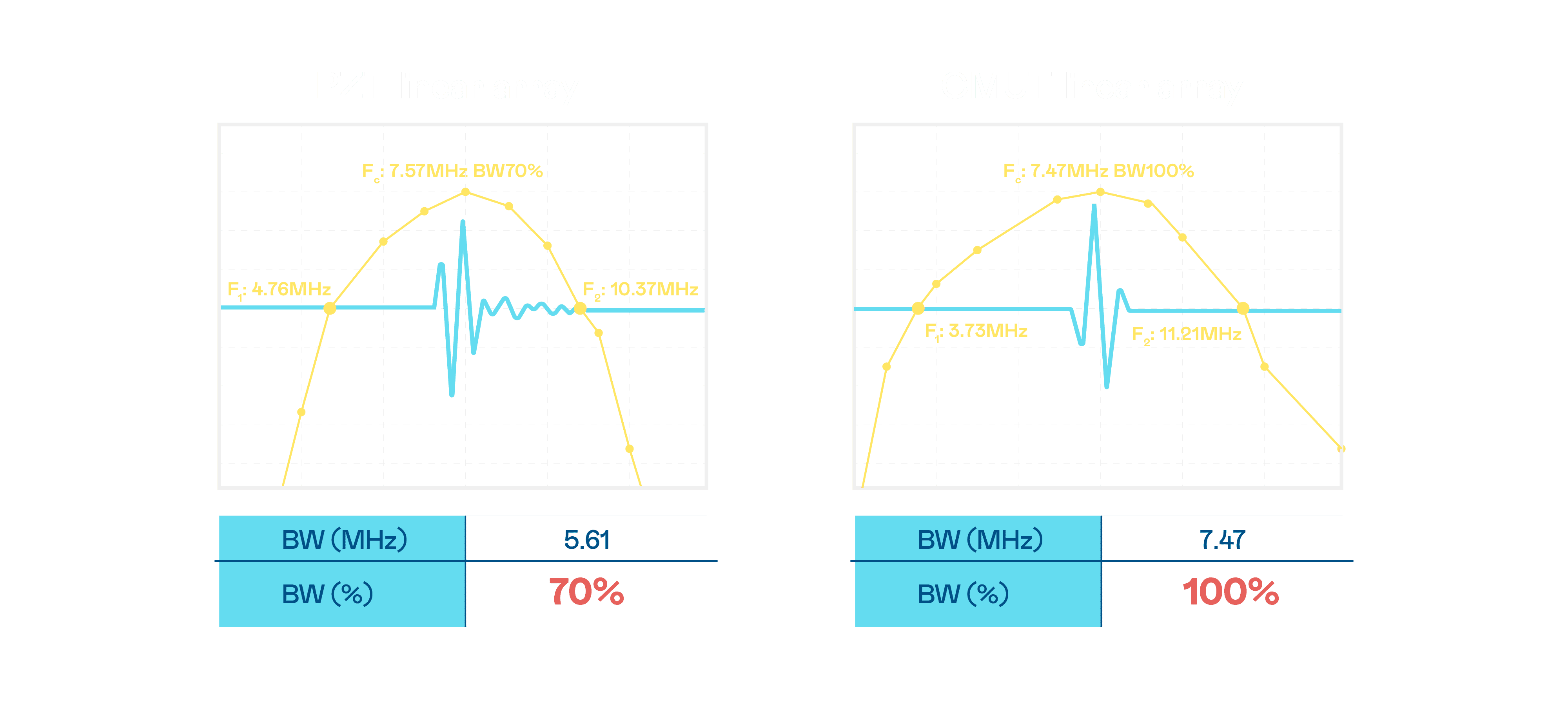 超音波影像的解析度高低,,首先取决于探头能发出的讯号频宽。。。CG电子 CMUT 可提供高清晰的超音波讯号,,,提供高频宽、、高灵敏度、、影像纹理细节更高的超音波影像,,,协助医护人员缩短影像判读时间及利用精准的医疗影像进行诊断。。。。